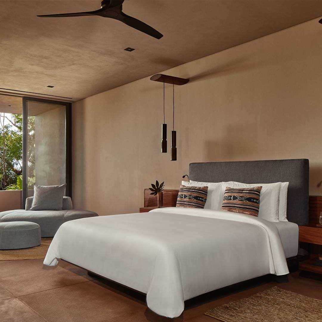 Les hébergements se déclinent entre villas nichées dans la jungle et treehouses perchées dans la canopée ou suspendues aux falaises. Chacune offre une intimité absolue, avec piscine privée, vastes terrasses et vues spectaculaires sur l’océan ou la forêt. Les intérieurs mêlent artisanat mexicain, matières naturelles et design contemporain dans une élégance feutrée.