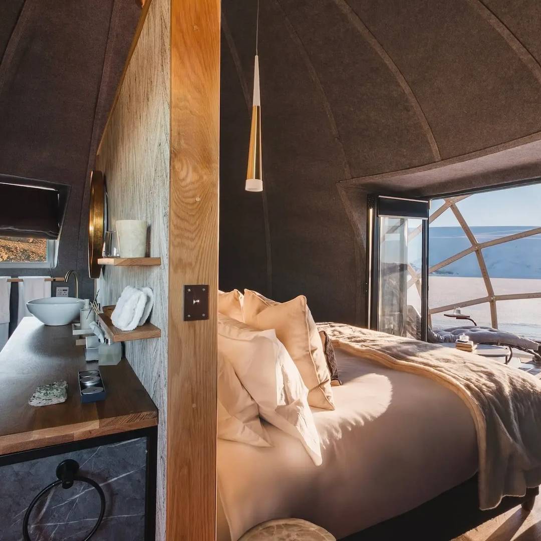 Le camp ne compte que six suites, garantissant une intimité totale. Chaque pod offre un lit king-size, une salle de bain privative et une vue ouverte sur l’immensité blanche. Se réveiller ici, sans bruit, sans réseau, sans repère, procure une sensation rare : celle d’être seule au monde. Le luxe n’est plus un décor, mais une émotion profonde, presque méditative.
