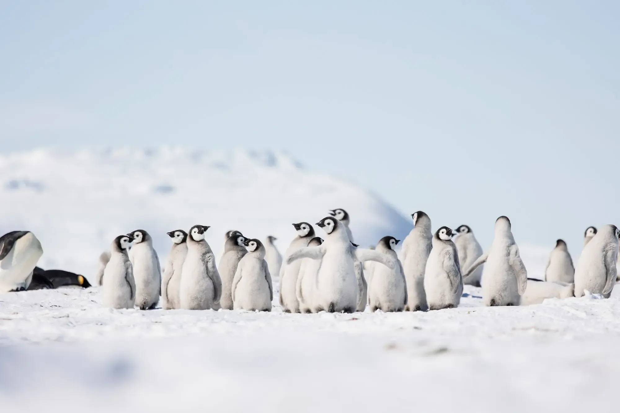 Randonnées sur glaciers, traversées en motoneige électriques, observation de formations de glace spectaculaires ou bains chauds en plein air face à l’infini blanc : les expériences sont encadrées par des guides polaires d’exception. Ici, aucune interaction intrusive avec la faune. Les distances d’observation sont strictement respectées, bien au-delà des standards touristiques. Manchots, phoques et oiseaux marins sont observés avec une infinie délicatesse, dans le plus grand respect de leurs cycles naturels.